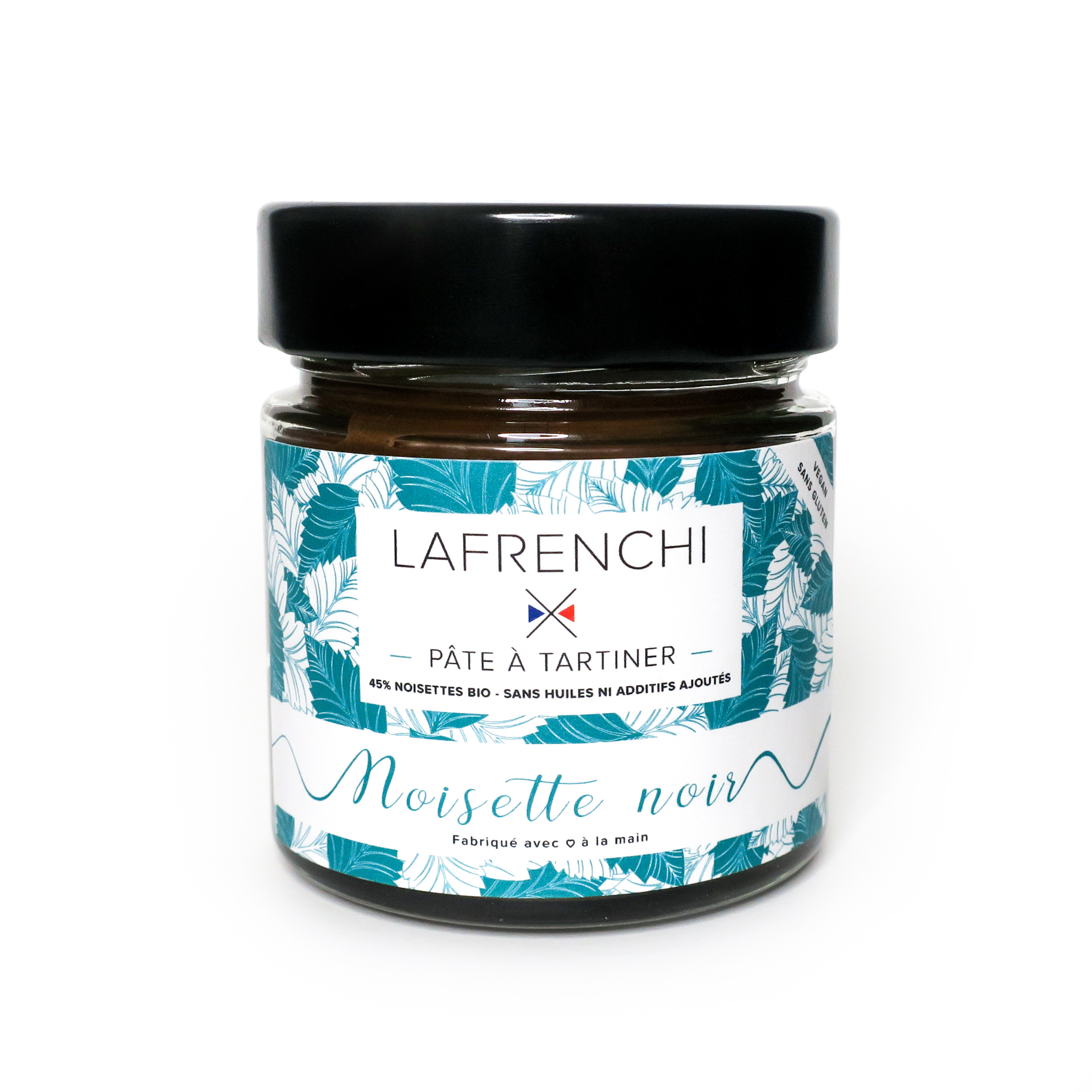 La pâte à tartiner Noisette Chocolat Noir de LAFRENCHI est une création artisanale qui marie l’intensité du chocolat noir à 65 % et la richesse des noisettes torréfiées. Sans huiles ni additifs, elle est composée de 45 % de noisettes, 35 % de chocolat noir, 20 % de sucre et une pointe de fleur de sel. Cette pâte onctueuse est idéale pour accompagner vos tartines, crêpes ou pour une dégustation directe à la cuillère.