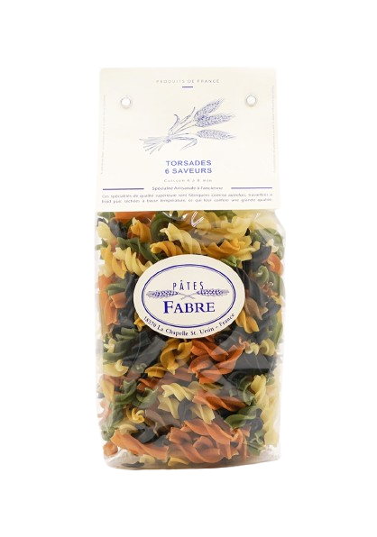Les Torsades 6 saveurs de Maison Pâtes Fabre sont un véritable voyage gustatif, alliant six saveurs uniques pour une expérience culinaire originale. Fabriquées artisanalement, ces pâtes aux couleurs vibrantes et aux arômes diversifiés apportent une touche de créativité à vos plats. Parfaites avec des sauces légères ou des légumes frais, elles égayeront vos repas avec leur texture parfaite et leur goût subtil.