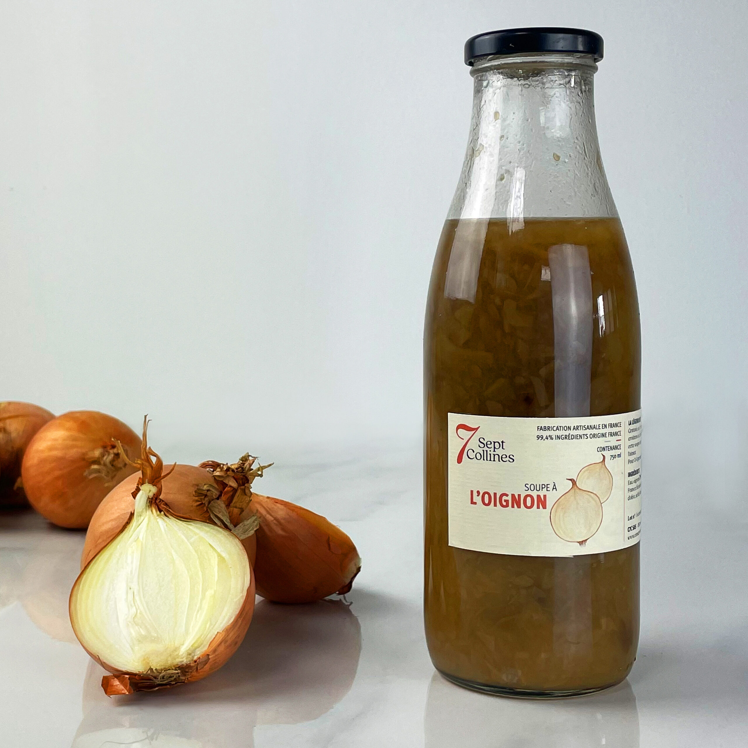 La Soupe à l’Oignon de Sept Collines est une préparation artisanale mettant en avant des oignons français (39,3 %) mijotés dans un bouillon savoureux, sans additifs ni conservateurs. Idéale dégustée nature, elle peut également être gratinée au fromage avec des croûtons pour une expérience encore plus gourmande. Pour des raisons logistiques, cette soupe est disponible uniquement dans les points de vente situés à Paris et en première couronne.