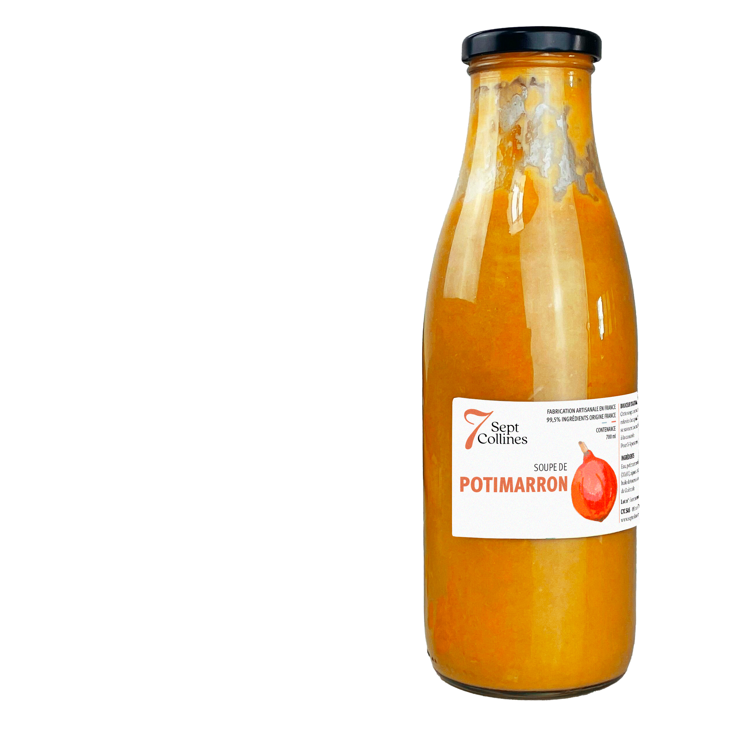 La Soupe de Potimarron de la Conserverie des Sept Collines est préparée artisanalement à Paris (18ᵉ arrondissement) dans l’atelier de Christophe et Ketty, lauréats de la Guilde des Artisans de la Tour Eiffel. Cette recette onctueuse met à l’honneur la douceur et la richesse du potimarron, subtilement relevée par une pointe d’épices douces et une touche d’huile d’olive. Sans additifs ni conservateurs, elle offre une saveur généreuse, un velouté incomparable et un vrai goût de légumes frais cuisinés comme à la maison.